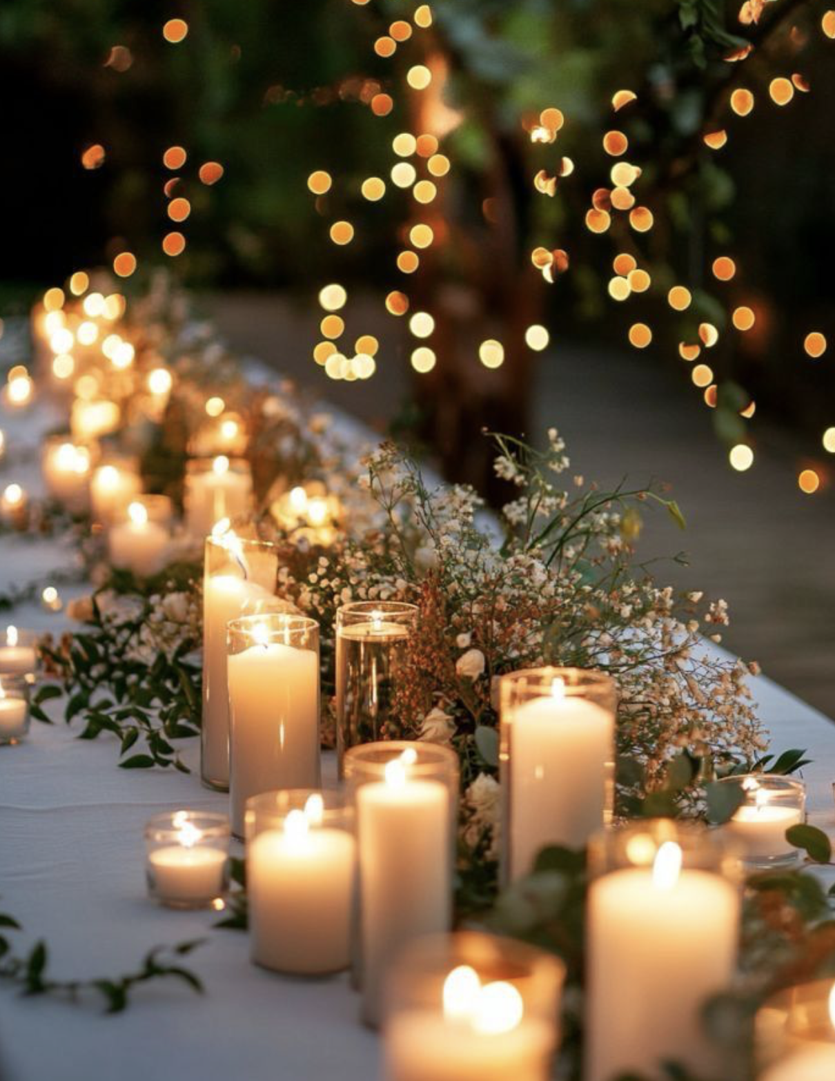 Candles can transform any space, bringing a warm, timeless & elegant feel to your wedding.